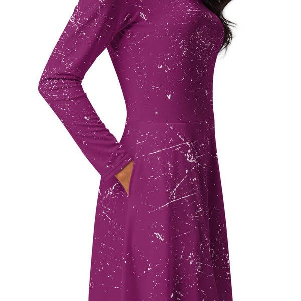 Une robe avec manches longues et poches, cette robe midi à manches longues est un indispensable pour toutes celles qui aiment porter des robes. La robe est dotée d'une silhouette confortable mais flatteuse car elle est ajustée à la taille et son bas est évasé.